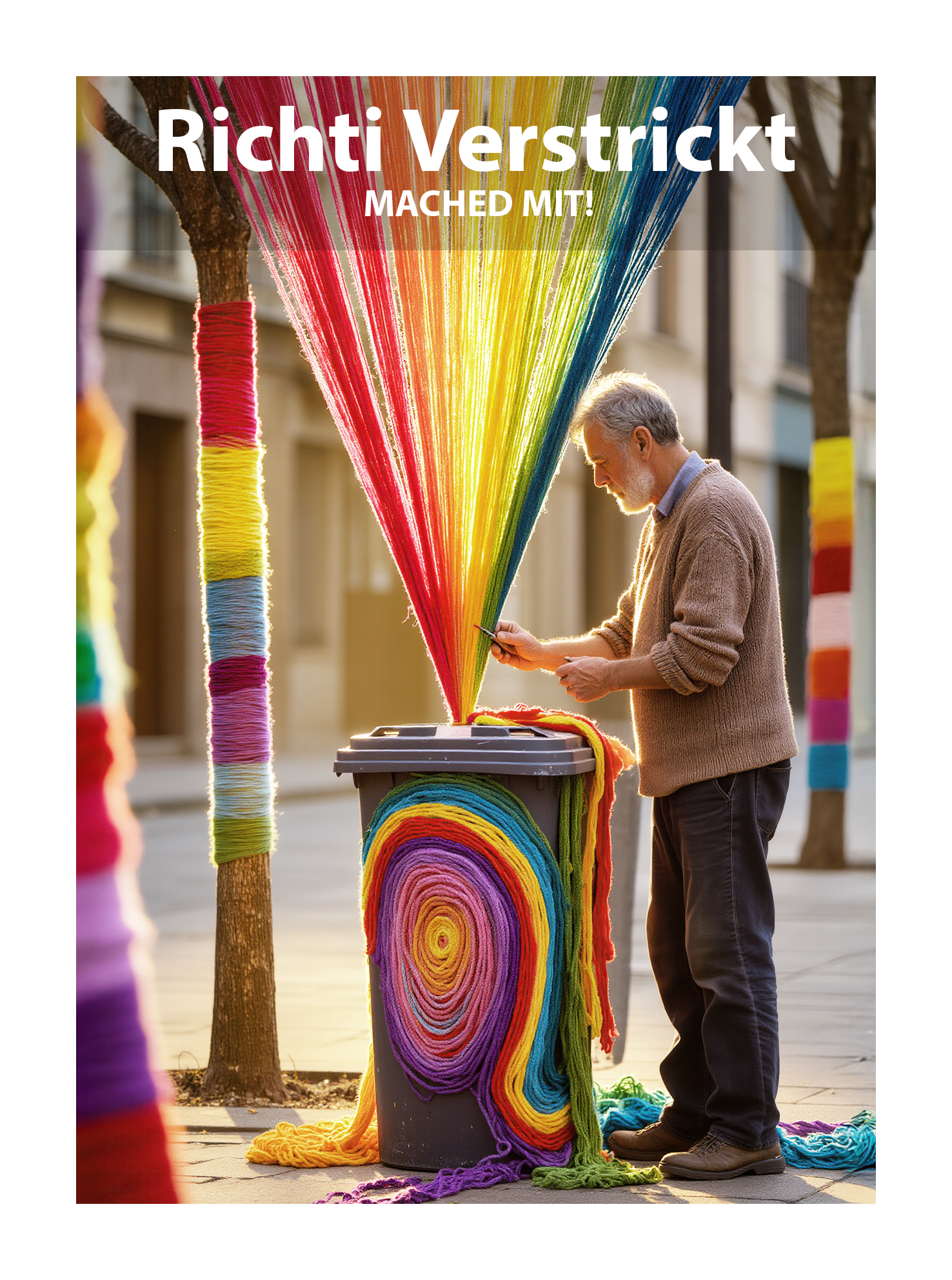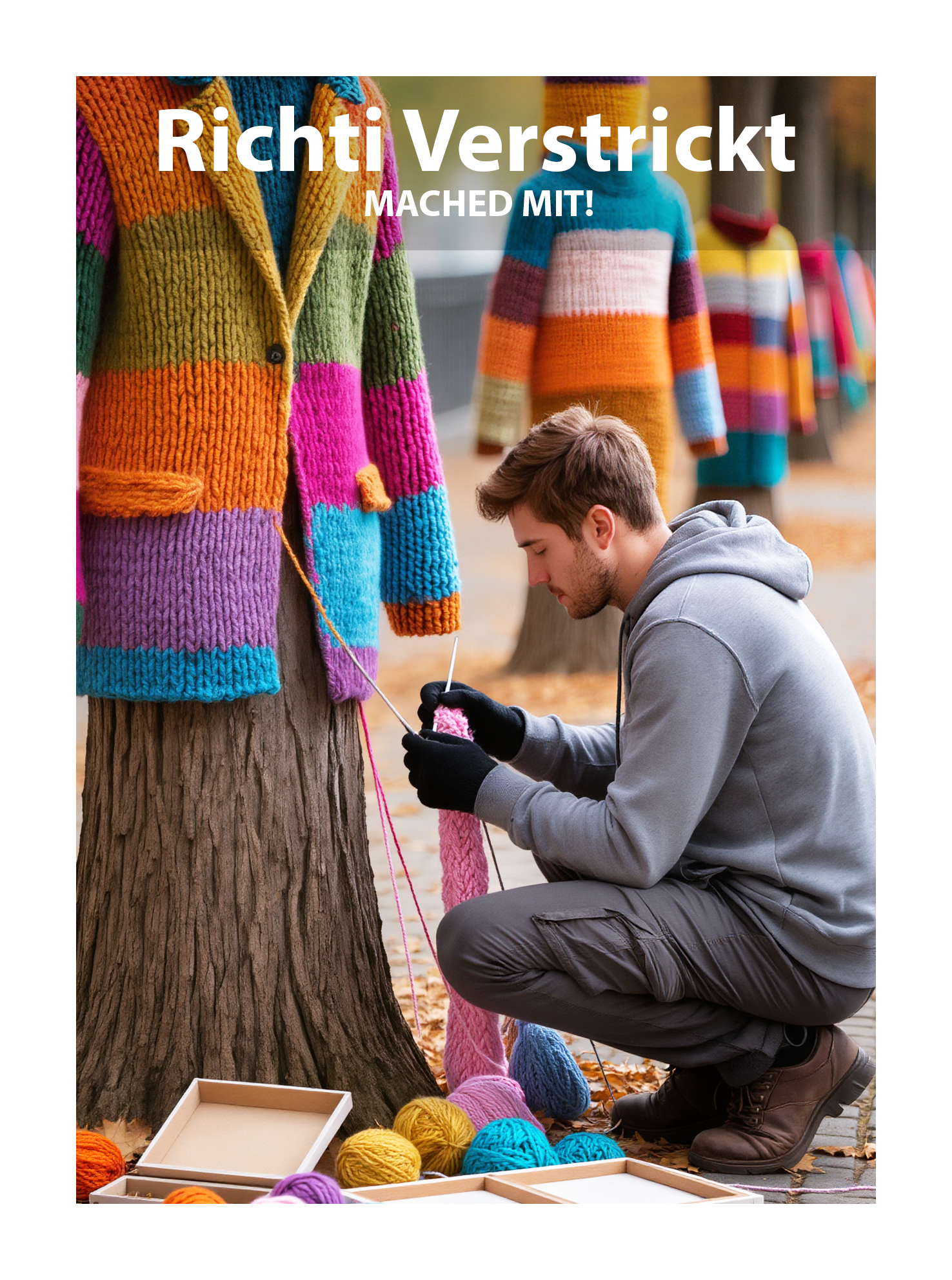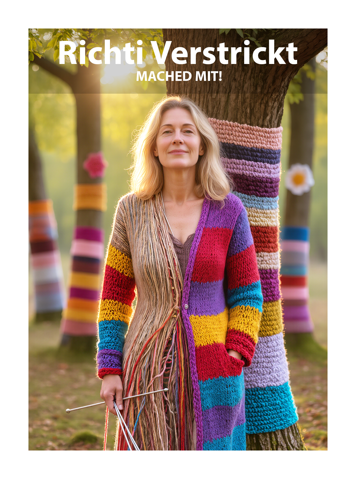 Hole dir Inspiration und erfahre an unserem Stand alles, was du über “Richti verstrickt” und die kommenden Strickaktionen wissen möchtest. Ab jetzt werden die Strickprojekte verteilt und zugeteilt. Mache mit und werde Teil unserer farbenfrohen Strickgemeinschaft! Auch Häkeln, Weben oder andere Techniken sind möglich, Hauptsache Bunt! Ein eigenes Projekt umsetzen? Sehr gerne, aber bitte mit Sabina di Nunzio (Rosa Träume) oder Claudia Tanner (Papeterie Köhler) abstimmen was, wie, wo…